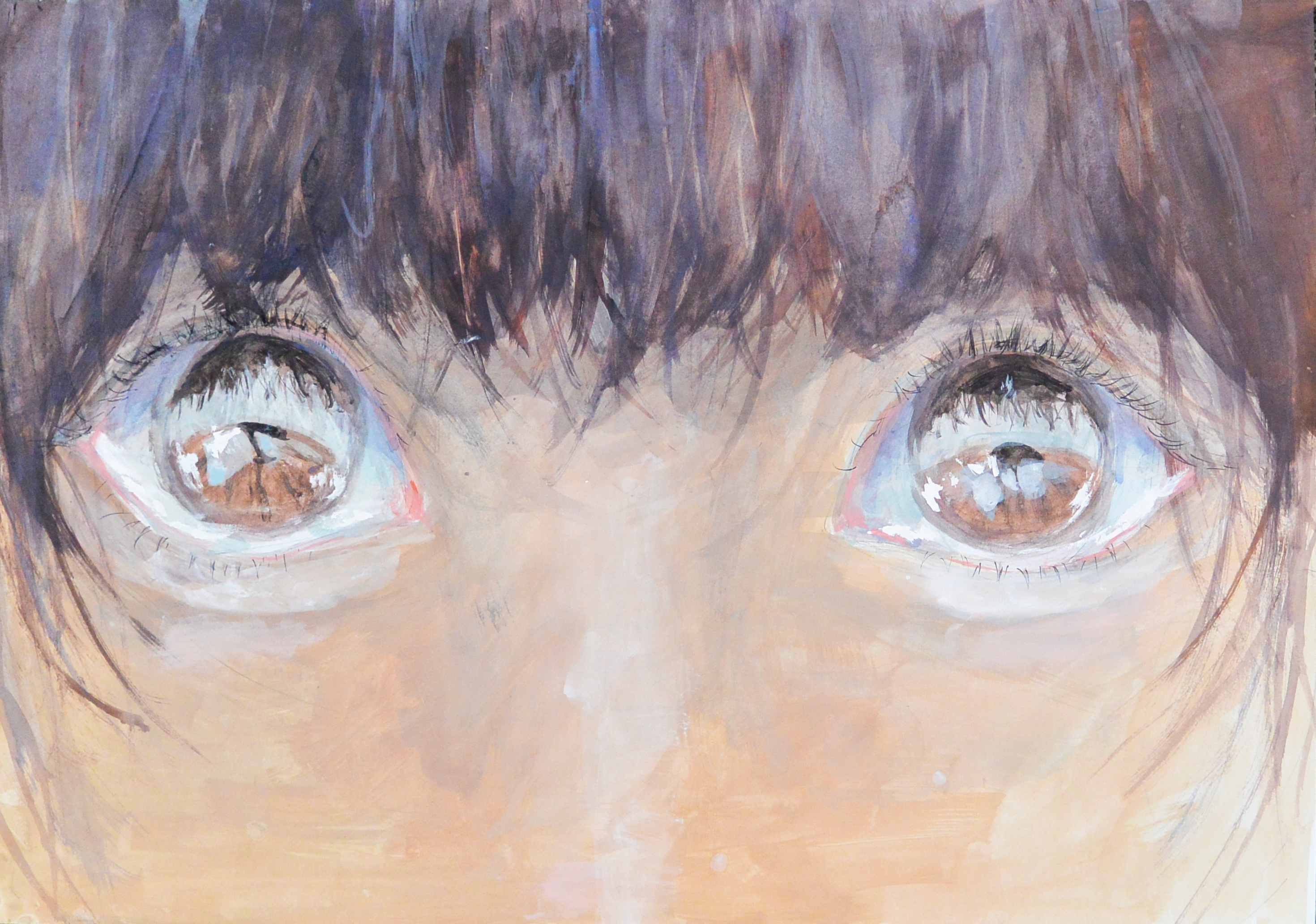 審査員作品評目力が強い。顔の上半分だけを描くことによって見る人に色々なことを想像させる。目に映っているものも丁寧に描かれているので目の前に何があるかもわかる。髪の表現も上手い。今までにない表現で大変大人っぽい。
